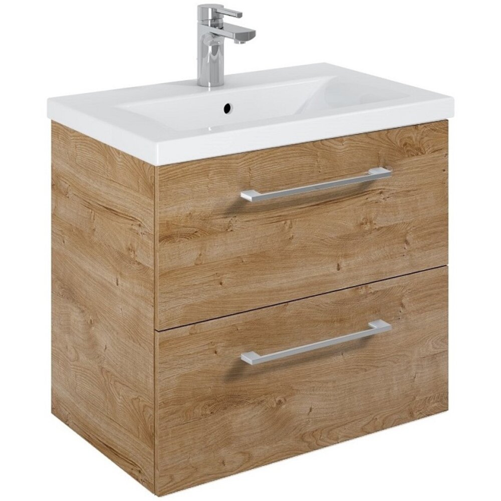 Szafka z umywalką w zestawie ROMA PLUS COMPACT 60 dąb canela. Set Roma Plus Compact 60 cm, 2 szuflady z pełnym wysuwem i funkcją cichego samodomyku. Wykonana z materiałów wysokiej jakości, front i korpus z płyty laminowanej, lakierowanej w kolorze dąb canela, uchwyty metalowe w kolorze chrom. Set składa się z szafki podumywalkowej i umywalki ceramicznej.