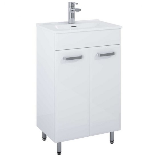 Set Amigo Street 50 2D, składa się z szafki oraz umywalki ceramicznej, w kolorze białym. Biały kolor, metalowe chromowane uchwyty i nóżki zapewniają stylowy design i elegancki wygląd. Front i boki szafki lakierowane są na wysoki połysk co dodaje meblom estetyki a jednocześnie sprawia, że są wyjątkowo łatwe w utrzymaniu czystości. Set wyposażony jest w 1 półkę z regulowaną wysokością i zawiasy wypinane z funkcją cichego samodomyku.