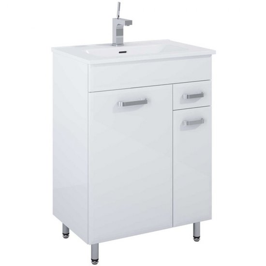 Set Amigo 60 cm (szafka + umywalka) na nóżkach, 2 drzwiczek, 1 szuflada, wyposażony w 1 półkę z regulowaną wysokością. Wykonany z materiałów wysokiej jakości, front i korpus lakierowany, uchwyty i nóżki metalowe w kolorze chrom. Zawiasy wypinane z funkcją cichego samodomyku.