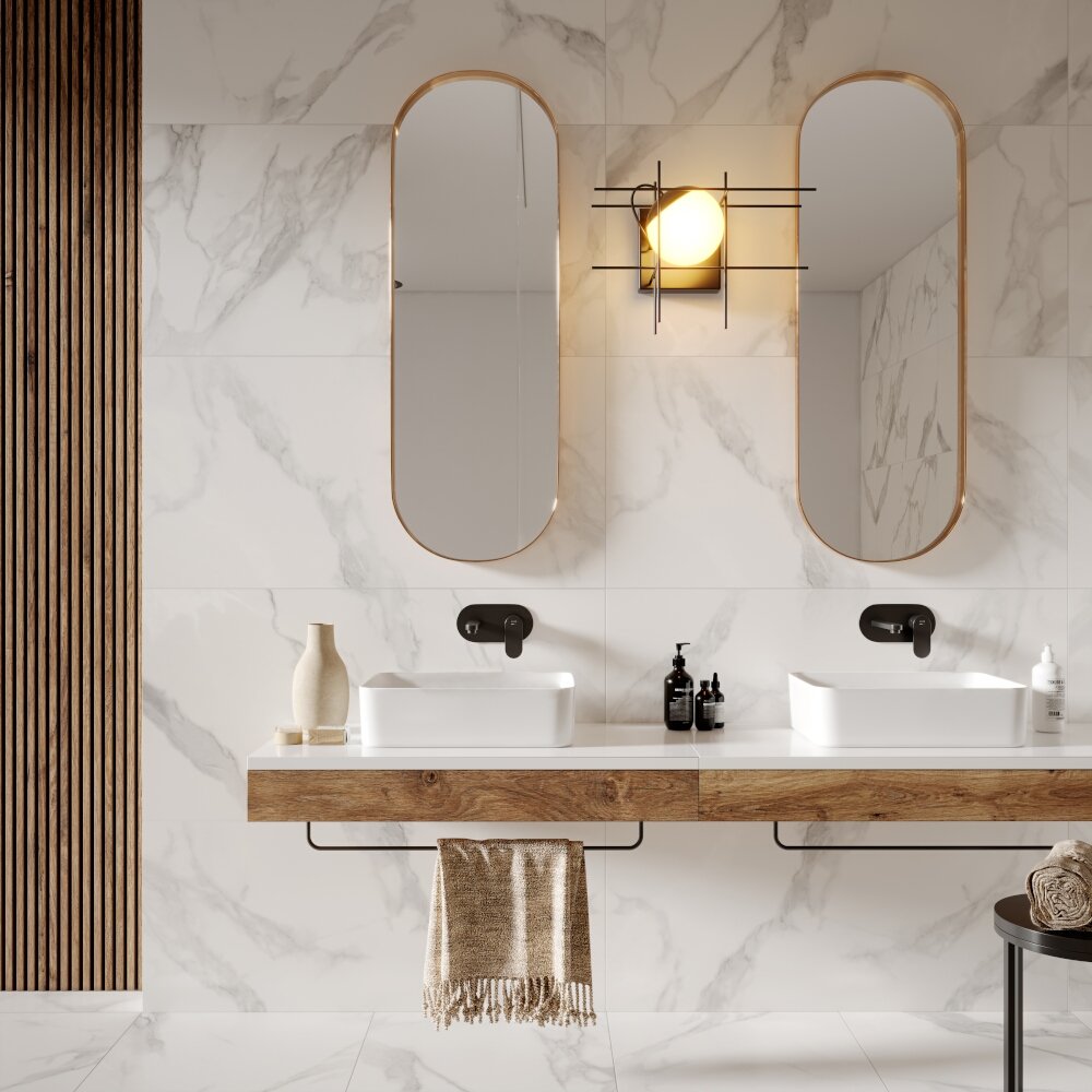 Gres szkliwiony CARRARA SOFT white satin 59,5x120 marki CERSANIT. Gatunek pierwszy. Do stosowania na podłogach i ścianach, wewnątrz i na zewnątrz budynków, z wyłączeniem miejsc o bardzo dużym natężeniu ruchu.
