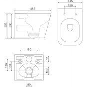 Miska wisząca FONTANA 49x35 cm z deską wolnoopadającą biały połysk.