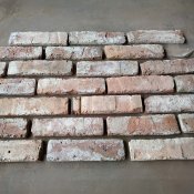Płytki cięte ze starej, oryginalnej, kilkudziesięcioletniej cegły.