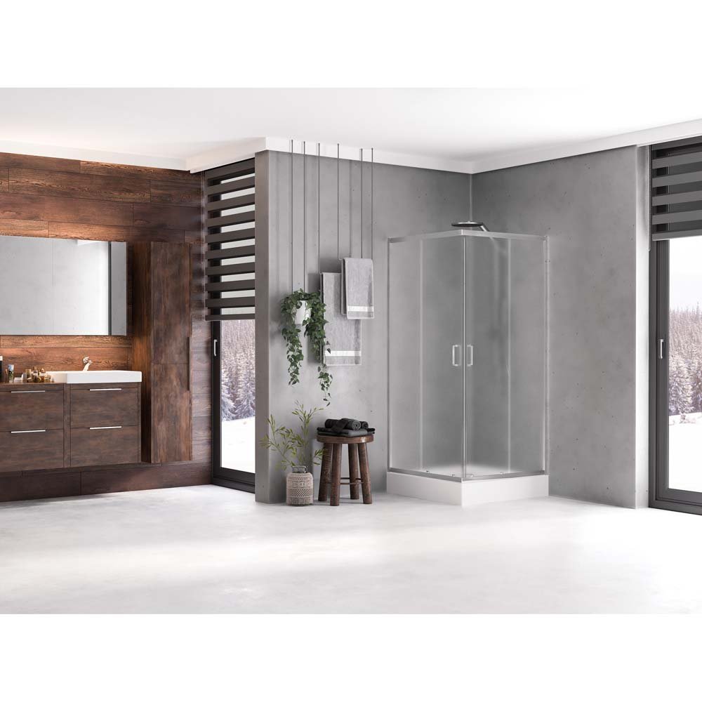 Zestaw - Kabina prysznicowa FERIA kwadratowa 90x90x201 drzwi przesuwne szkło perła 5mm + Brodzik kompaktowy MARRO