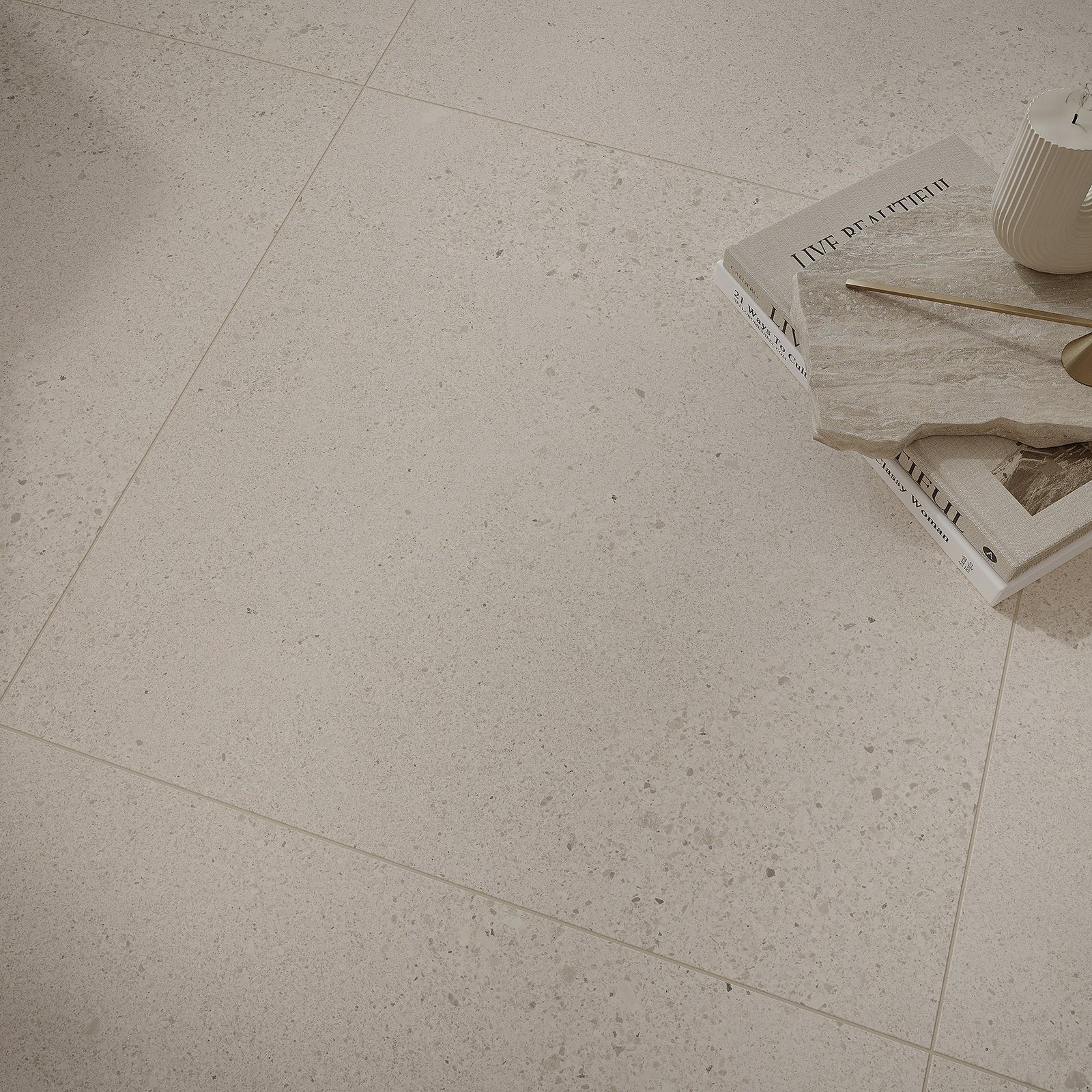 Gres szkliwiony SMALL TERRAZZO STONE white mat 59,8x59,8. Gatunek drugi. Do stosowania na podłogach i ścianach, wewnątrz i na zewnątrz budynków, z wyłączeniem miejsc o bardzo dużym natężeniu ruchu.