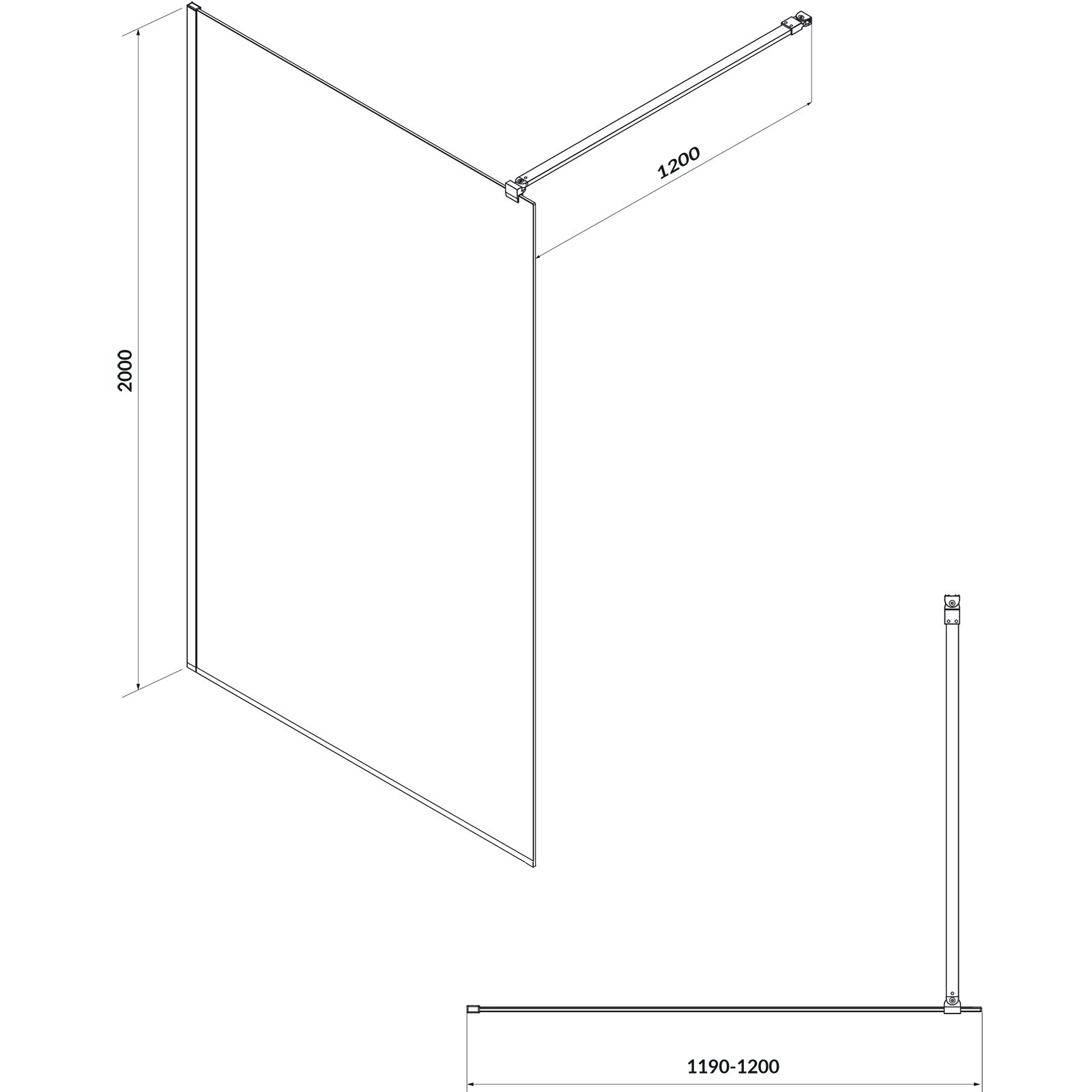 Ścianka prysznicowa walk-in MILLE 120x30x200 czarny