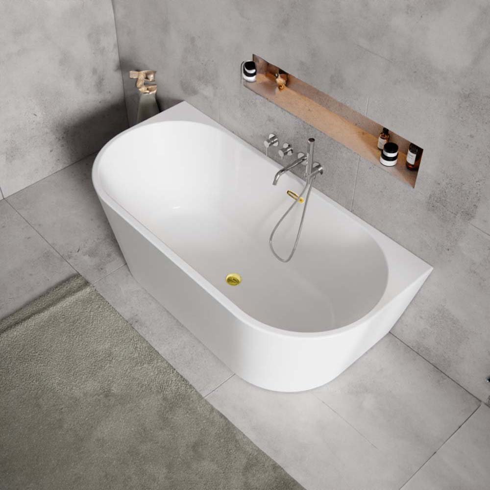 Wanna wolnostojąca przyścienna VICA NEW 160 z syfonem z przelewem slim złoty