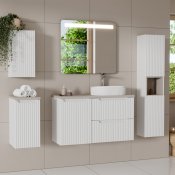 Kolekcja NOVA WHITE to zestawienie klasycznych brył z ryflowanymi frontami wykonanymi z płyty MDF. Zestawy meblowe pasują zarówno do klasycznych, jak i nowoczesnych wnętrz. Przestronne półki i szafki pozwolą utrzymać ład i porządek w łazience.