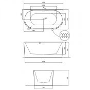 Wanna wolnostojąca przyścienna LEYA B&W 170 z syfonem klik-klak czarnym