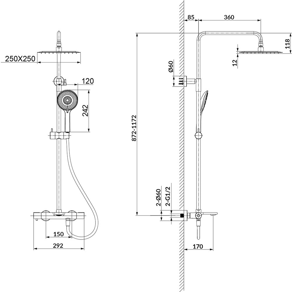 - Deszczownica slim o średnicy 25 cm wykonana ze stali nierdzewnej 25 cm
