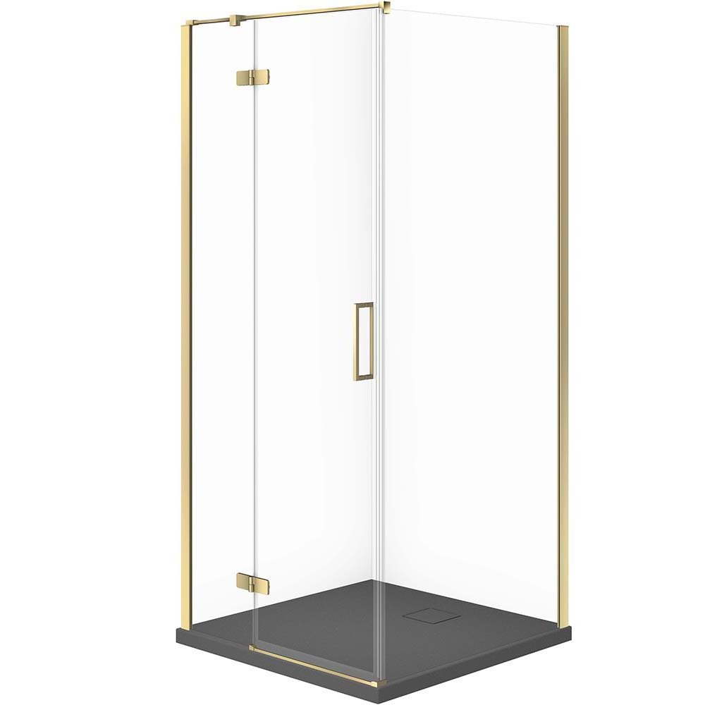 Zestaw kabina prysznicowa JOTA lewa 80x80 złota, brodzik TAKO SLIM szary mat