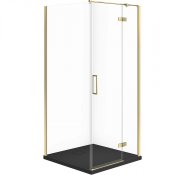 Zestaw kabina prysznicowa JOTA prawa 90x90 złota, brodzik TAKO SLIM czarny mat