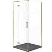 Zestaw kabina prysznicowa JOTA lewa 90x90 złota, brodzik TAKO SLIM szary mat