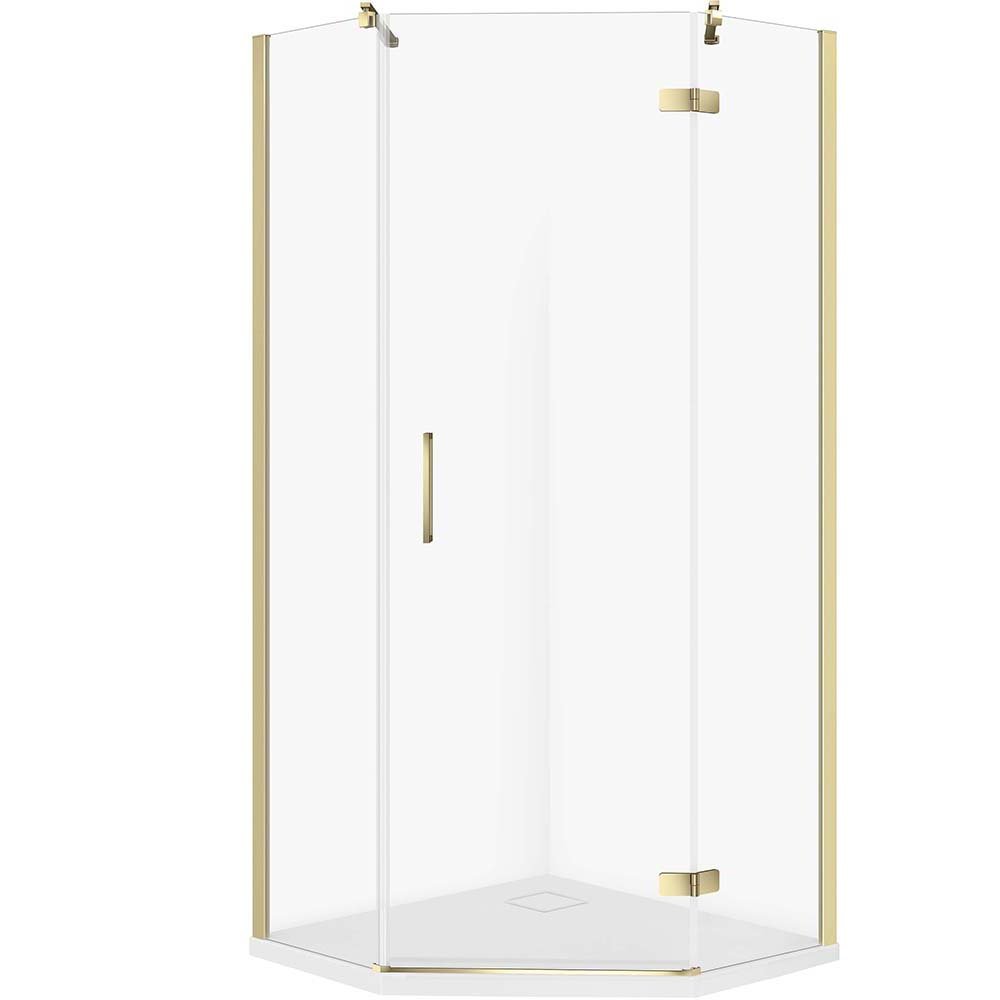 Zestaw kabina pięciokątna JOTA prawa 80x80 złota, brodzik TAKO SLIM 4 cm biały