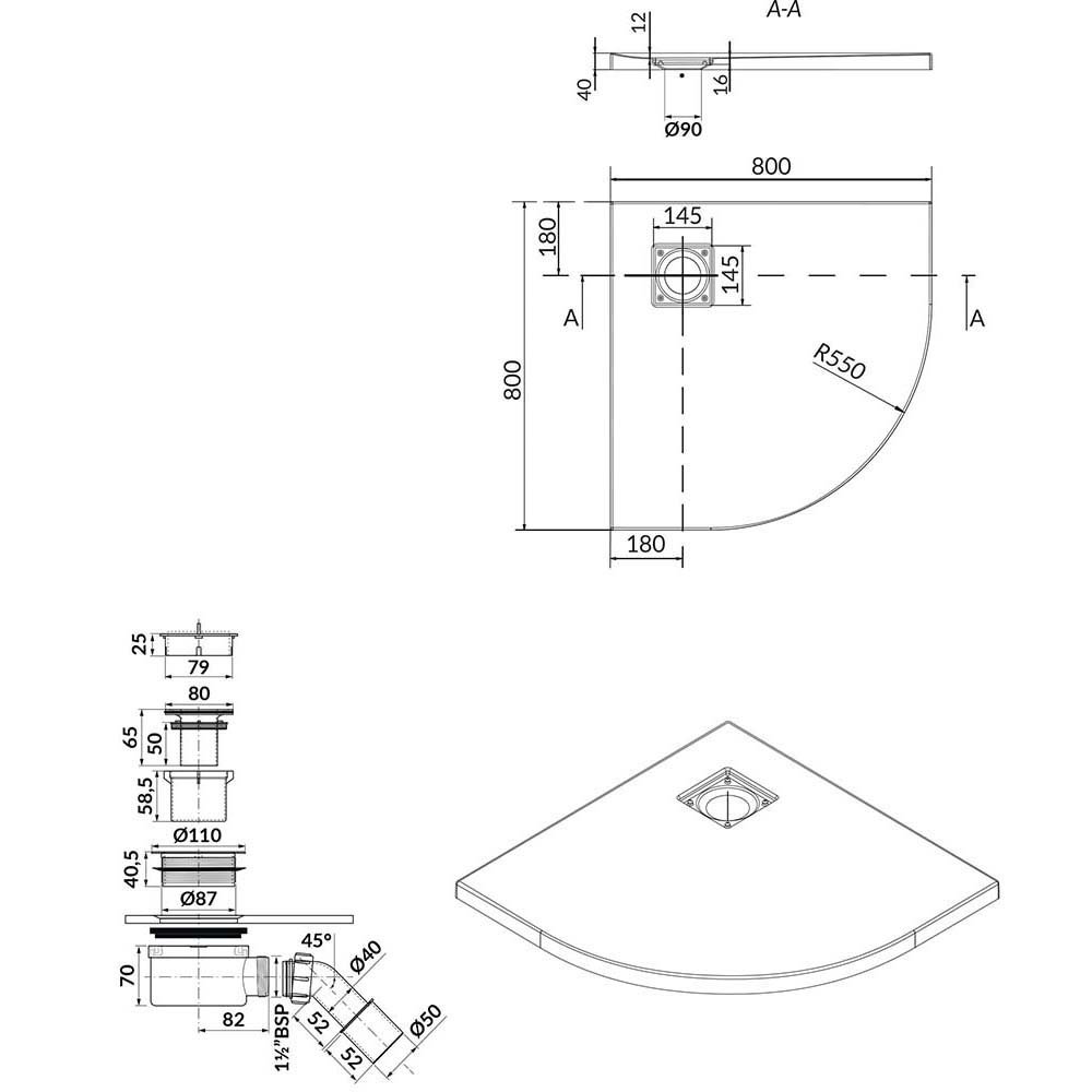 Kompletny zestaw składający się z kabiny prysznicowej, brodzika oraz syfonu brodzikowego.
