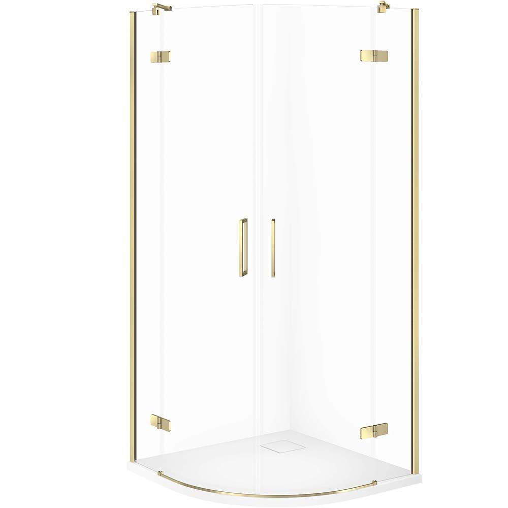 Zestaw kabina półokrągła JOTA 90x90 złota, brodzik TAKO SLIM biały mat