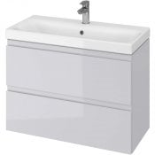 Szafka podumywalkowa MODUO Slim w kolorze szarym, została wykończona lakierowaną płytą meblową. Model wyposażony w dwie pojemne szuflady, które pomieszczą niezbędne akcesoria, frezowane uchwyty i sysytem cichego domykania. Szafka do samodzielnego montażu.