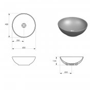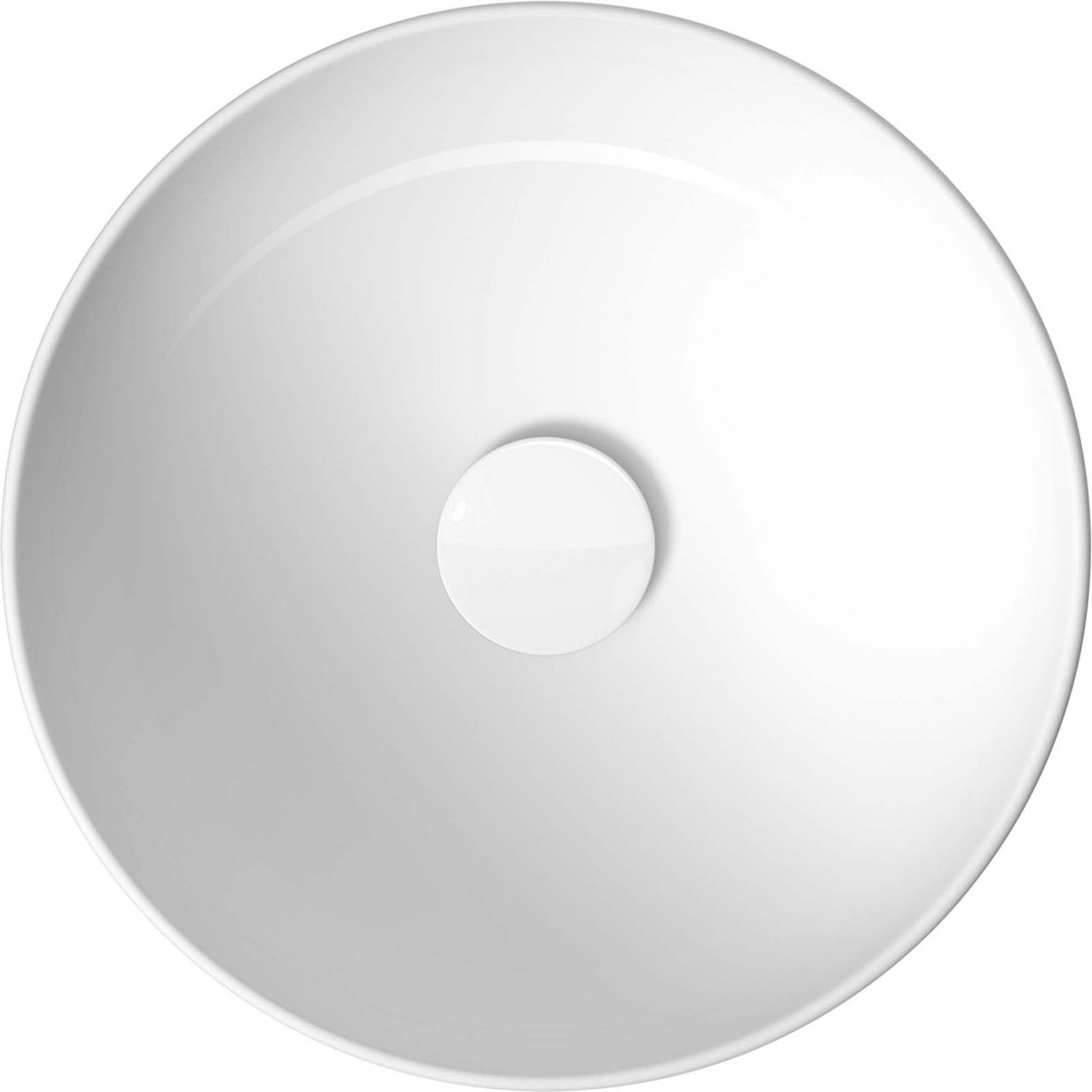 Umywalka nablatowa okrągła SAVIO 40 z logo biała połysk.