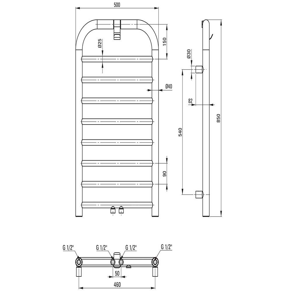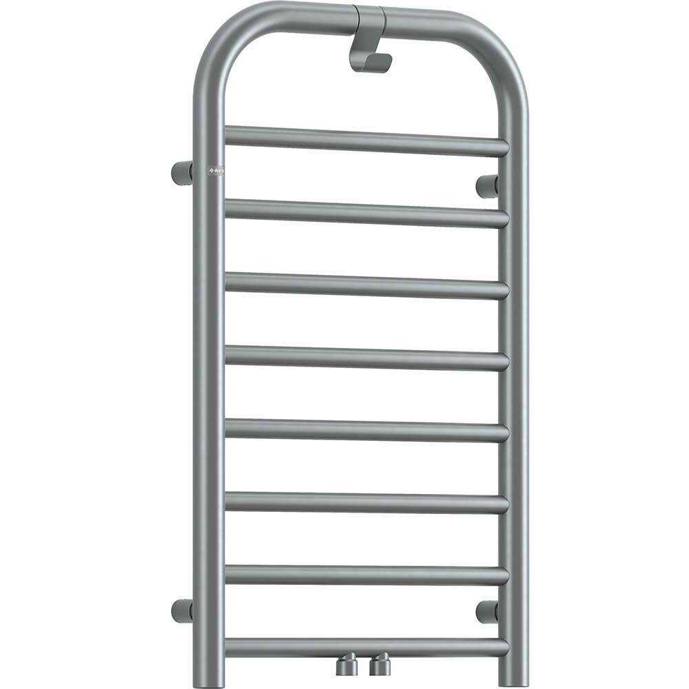Stylowy grzejnik łazienkowy w matowym kolorze stalowym, rozmiar 850x500, wyróżnia się obłymi kształtami i wysoką jakością wykonania. Wyposażony jest w użyteczny haczyk na ręczniki lub szlafrok. Jest to hybrydowy model: wodno-elektryczny z możliwością dodania grzałki 400W, która zapewni dodatkowe ogrzewanie lub suszenie ręczników poza sezonem grzewczym. Do grzejnika należy dokupić zawór. Zarówno opcjonalna grzałka, jak i niezbędny zawór dostępne są w tym samym kolorze co grzejnik.