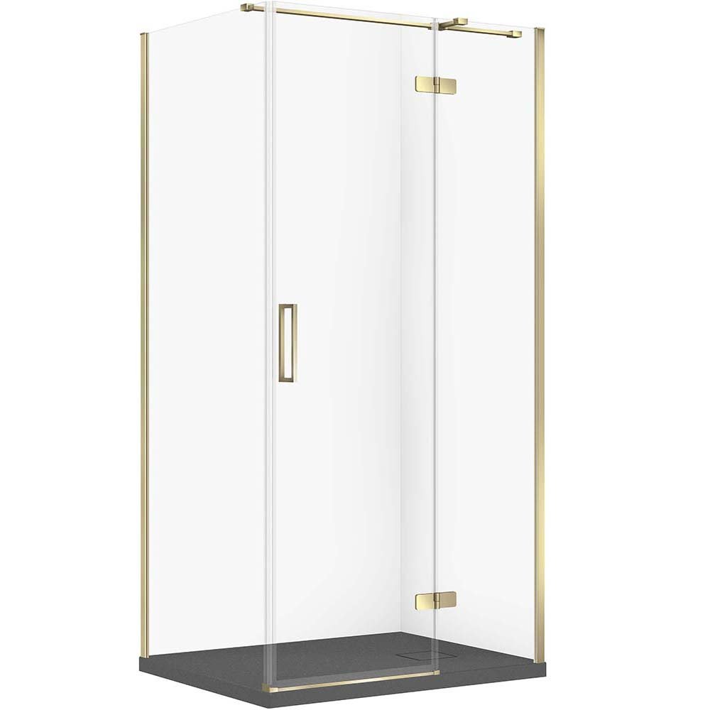 Zestaw kabina prostokątna JOTA prawa 100x80 złota, brodzik TAKO SLIM szary mat