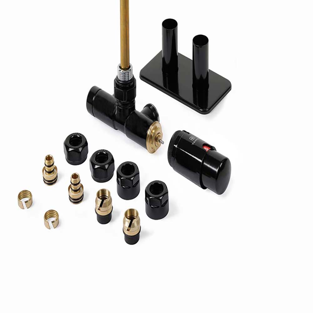 Zestaw zaworowy zespolony z rurką zanurzeniową TERMA UNICO ALL IN ONE. Umożliwia podłączenie grzejnika na jednym kolektorze dając możliwość montażu grzałki na pozostałym. Przystosowany do montażu dla przyłączy ścienny o rozstawie 50mm. Wersja lewa lub prawa. Zestaw składa się z zaworu, adapterów do instalacji Pex (16x2) lub Cu (miedź 15mm) a także pokrętła termostatu, śrubunków łączących grzejnik z zaworem oraz eleganckiej maskownicy przyłączy. Dostępne w kolorze CHROM, RAL 9106 mat oraz RAL 9005 mat.