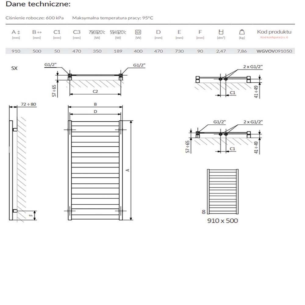 Grzejnik łazienkowy VIVO 91x50 czarny