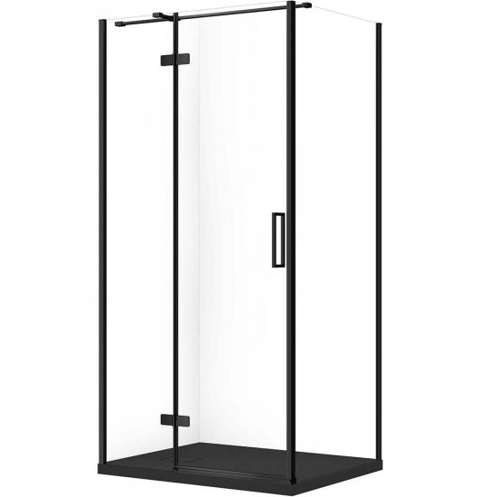 Zestaw kabina prostokątna JOTA lewa 100x80 czarna, brodzik TAKO SLIM czarny mat