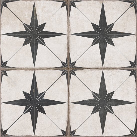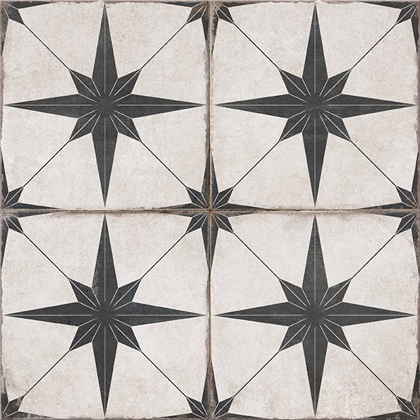 Gres szkliwiony VESARIO patchwork black mat 42x42. Gatunek drugi. Do stosowania na podłogach i ścianach, wewnątrz i na zewnątrz budynków, z wyłączeniem miejsc o bardzo dużym natężeniu ruchu.