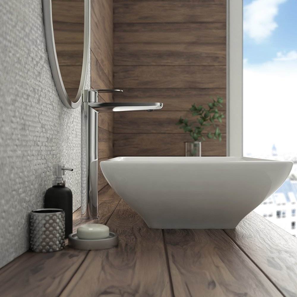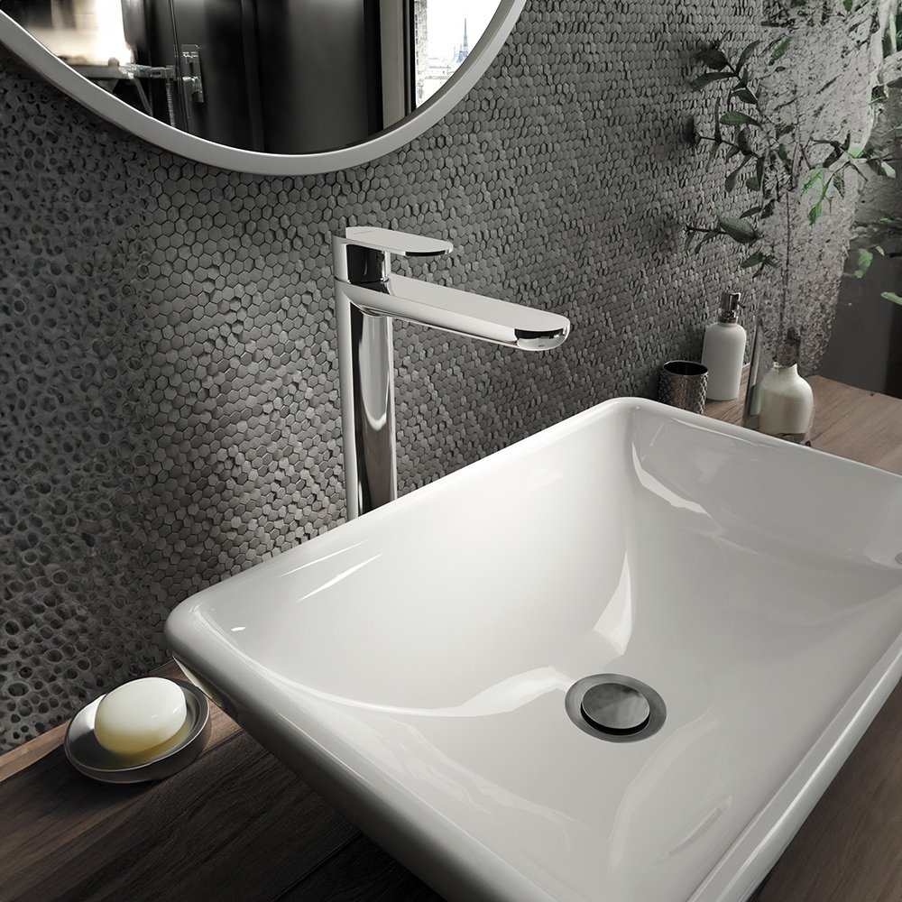 Bateria umywalkowa z kolekcji Alpinia prezentuje się wyjątkowo ze względu na swoją unikalną konstrukcję. Choć ma klasyczne podstawy, wyróżnia ją zróżnicowana forma, z okrągłymi liniami, ostrymi brzegami i płaską nawierzchnią dźwigni oraz wylewki. Chromowe wykończenie baterii dodaje stylowego akcentu do nowoczesnej łazienki. Dodatkowo, aby ograniczyć zużycie wody, produkt został wyposażony w aerator, który napowietrza strumień.