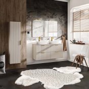 Blat o długości 120 cm z kolekcji Adel Cashmere w popularnym kolorze kaszmirowym, dodaje łazience stylowego wykończenia i idealnie współgra z innymi elementami tej samej serii. Wykonany z trwałych materiałów takich jak płyta MDF i folia PVC, zapewnia solidność i długotrwałe użytkowanie. Jego powierzchnia jest łatwa do czyszczenia i utrzymania w doskonałym stanie. W celu zamontowania umywalki należy wyciąć otwór przeznaczony na syfon w miejscu adekwatnym do rozmiarów i usytuowania umywalki. Każdy blat wyróżnia się starannym wykonaniem i dbałością o detale, gwarantując estetyczny wygląd oraz długotrwałą satysfakcję z użytkowania, popartą 2 latami gwarancji.