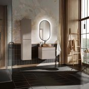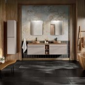 Kolekcja ICONIC CASHMERE, to projekt, w którym zostały wykorzystane pionowe frezowania we frontach. Ryflowanie, to szczególnie atrakcyjny i wszechstronny efekt wzorniczy wprowadzający ruch i płynność do każdego wnętrza łazienki.