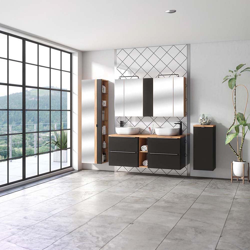 Wyjątkowość kolekcji CAPRI COSMOS wynika przede wszystkim z połączenia prostej i stonowanej formy z pięknym dekorem pozwalając stworzyć harmonijne, eleganckie wnętrze. Połączenie korpusów i frontów w kolorze szary kosmos wraz z dębowym wnętrzem szafek nadaje kolekcji unikalnego charakteru. Geometryczną formę mebli podkreślają krawędziowe uchwyty.