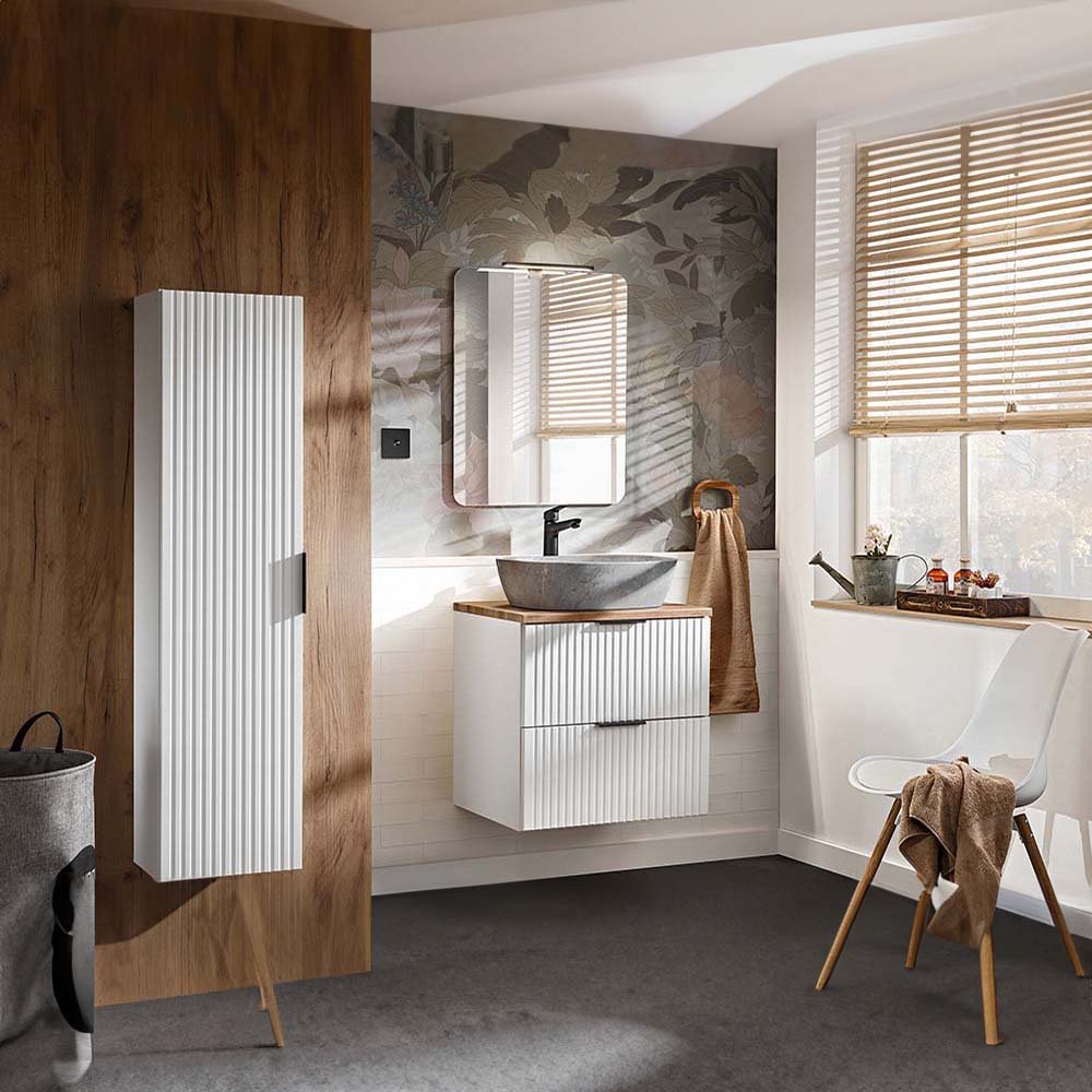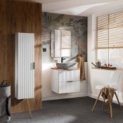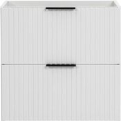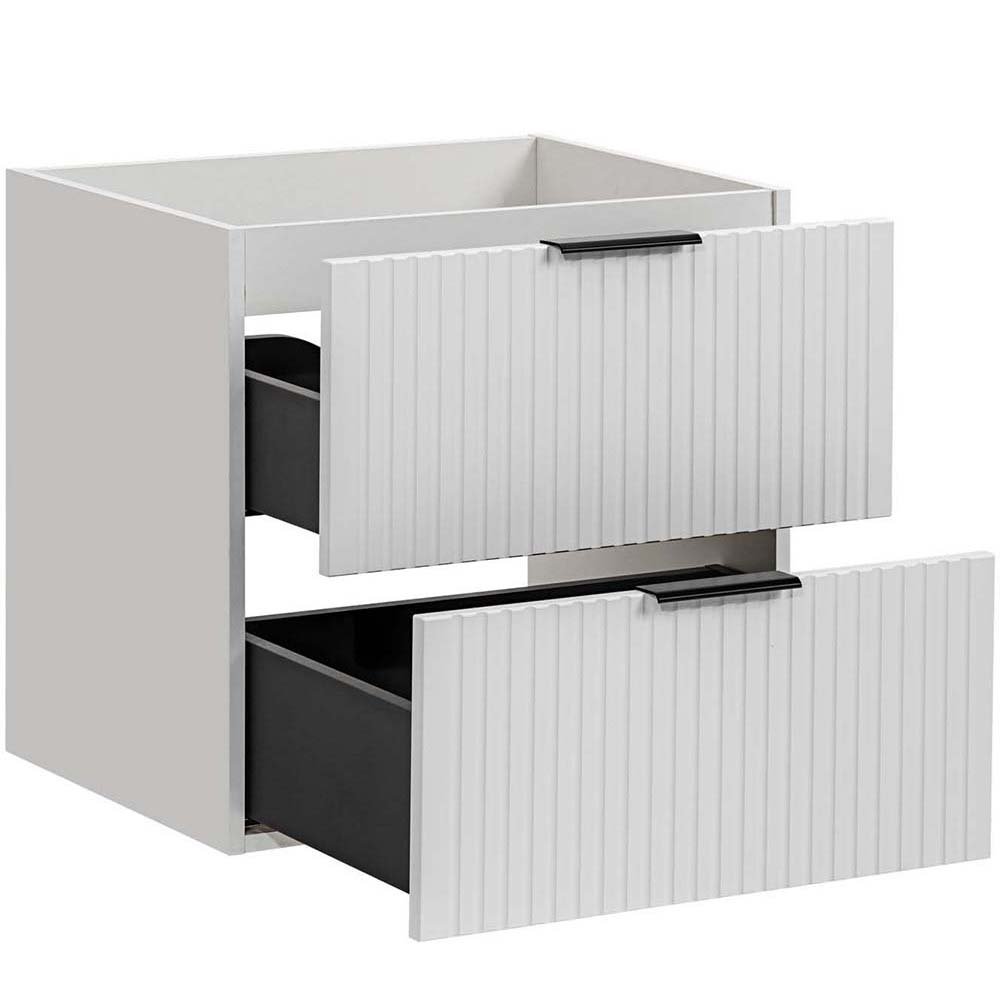 Szafka pod umywalkę 60 cm z dwoma szufladami z kolekcji Adel White łączy elegancję z funkcjonalnością. Charakteryzuje się klasycznymi proporcjami brył i wyjątkowymi, ryflowanymi frontami. Uchwyty w trzech kolorach - złoty połysk, chrom połysk oraz czarny mat - nadają jej stylowy wygląd.