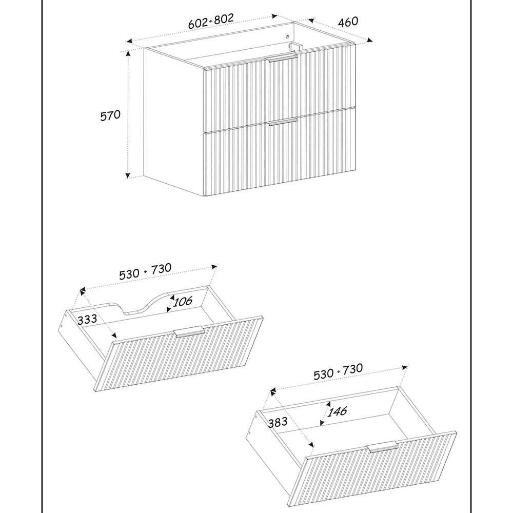 Dwie pojemne szuflady oferują dużo miejsca na akcesoria łazienkowe, utrzymując porządek. Szafka wykonana z trwałych materiałów takich jak płyta MDF i płyta laminowana, zapewnia solidność i długotrwałe użytkowanie. Meble zostały zaprojektowane z myślą o maksymalnej funkcjonalności, spełniając oczekiwania nawet najbardziej wymagających użytkowników.