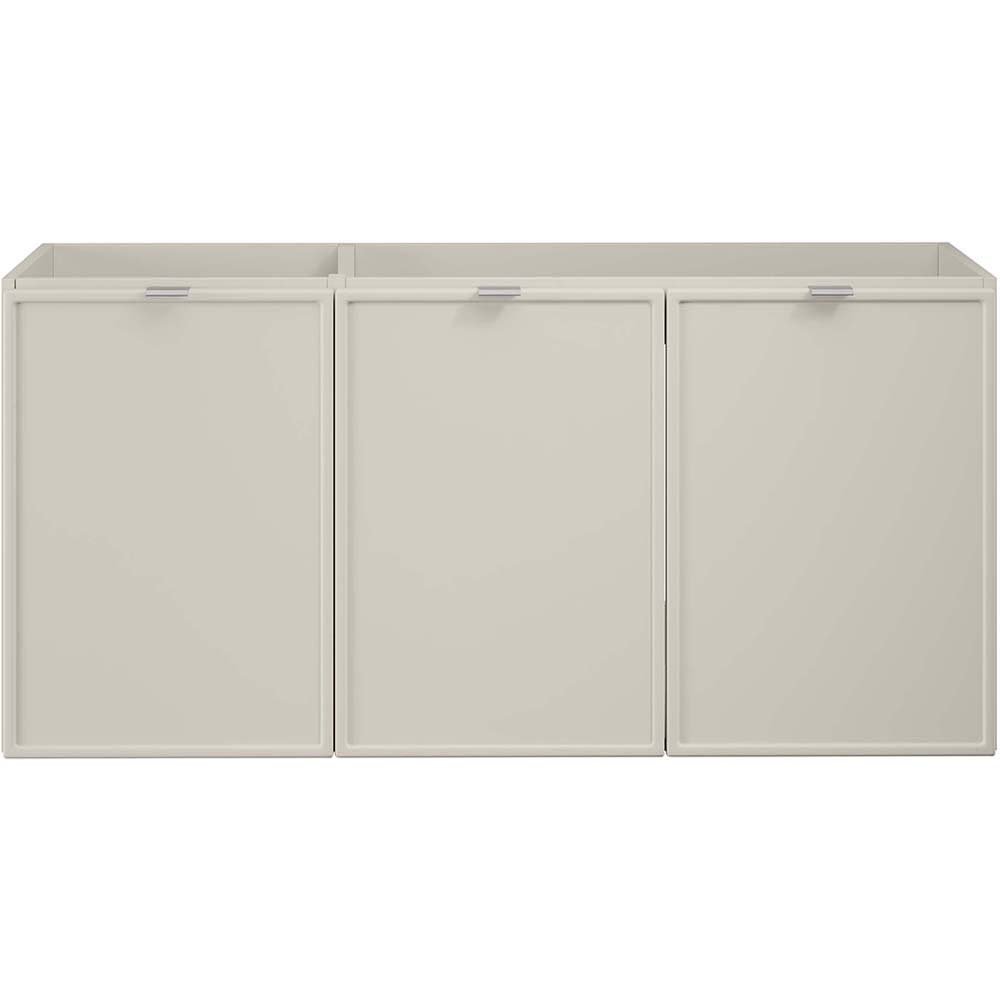 Szafka pod umywalkę trzydrzwiowa o szerokości 120 cm z kolekcji Bella Cashmere doskonale wpisuje się w nowoczesne i klasyczne aranżacje łazienkowe. Mebel został starannie wykończony w subtelnym odcieniu kaszmiru, nadając wnętrzu łagodny, harmonijny charakter. Charakterystyczne fronty z frezowaną ramką dodają mu wyrafinowanego stylu. Uchwyty w trzech kolorach - złoty połysk, chrom połysk oraz czarny mat - nadają stylowy wygląd. Jej wszechstronny design łatwo łączy się z produktami uniwersalnymi w dekorze Cashmere i Artisan, tworząc spójną i stylową aranżację łazienki.