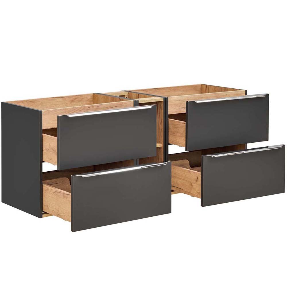 Wyjątkowość kolekcji CAPRI COSMOS wynika przede wszystkim z połączenia prostej i stonowanej formy z pięknym dekorem pozwalając stworzyć harmonijne, eleganckie wnętrze. Połączenie korpusów i frontów w kolorze szary kosmos wraz z dębowym wnętrzem szafek nadaje kolekcji unikalnego charakteru. Geometryczną formę mebli podkreślają krawędziowe uchwyty.