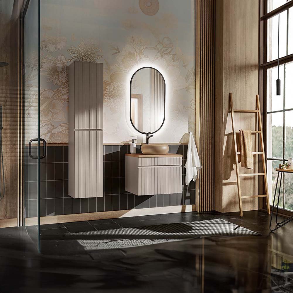 Kolekcja ICONIC CASHMERE, to projekt, w którym zostały wykorzystane pionowe frezowania we frontach. Ryflowanie, to szczególnie atrakcyjny i wszechstronny efekt wzorniczy wprowadzający ruch i płynność do każdego wnętrza łazienki.