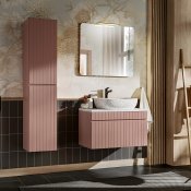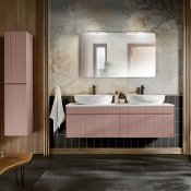Kolekcja ICONIC ROSE, to projekt, w którym zostały wykorzystane pionowe frezowania we frontach. Ryflowanie, to szczególnie atrakcyjny i wszechstronny efekt wzorniczy wprowadzający ruch i płynność do każdego wnętrza łazienki.