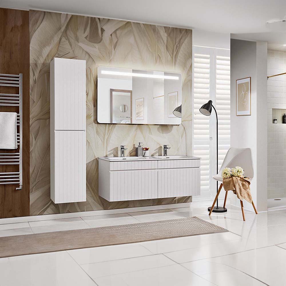 Kolekcja ICONIC WHITE, to projekt, w którym zostały wykorzystane pionowe frezowania we frontach i korpusie. Ryflowanie, to szczególnie atrakcyjny i wszechstronny efekt wzorniczy wprowadzający ruch i płynność do każdego wnętrza łazienki.