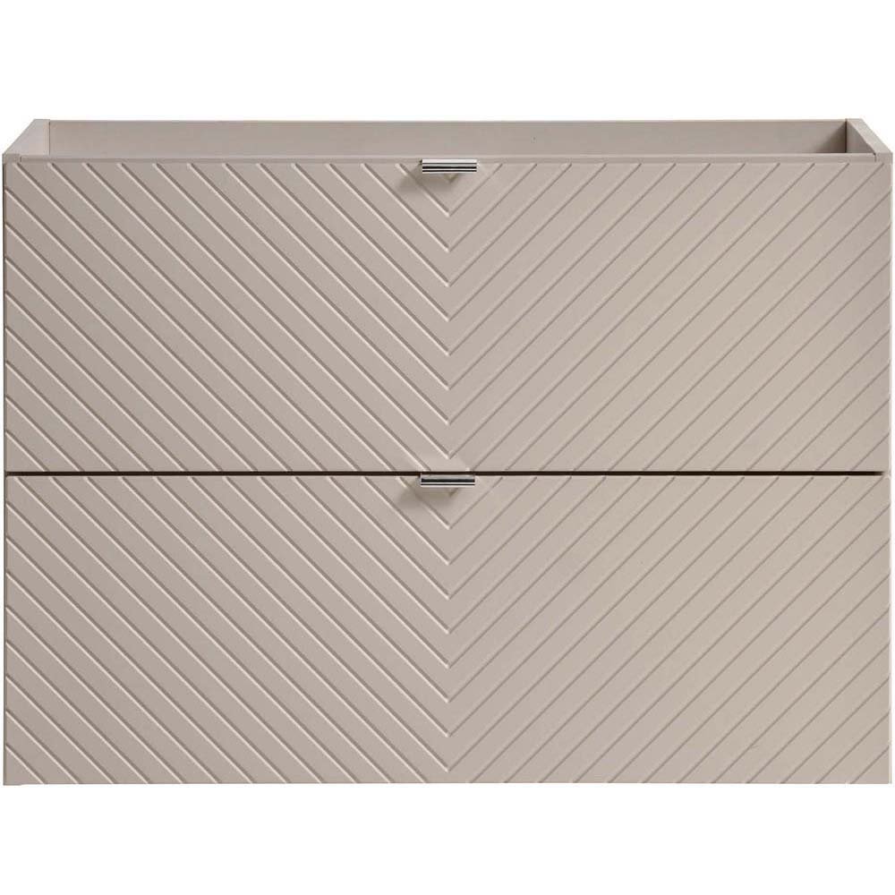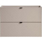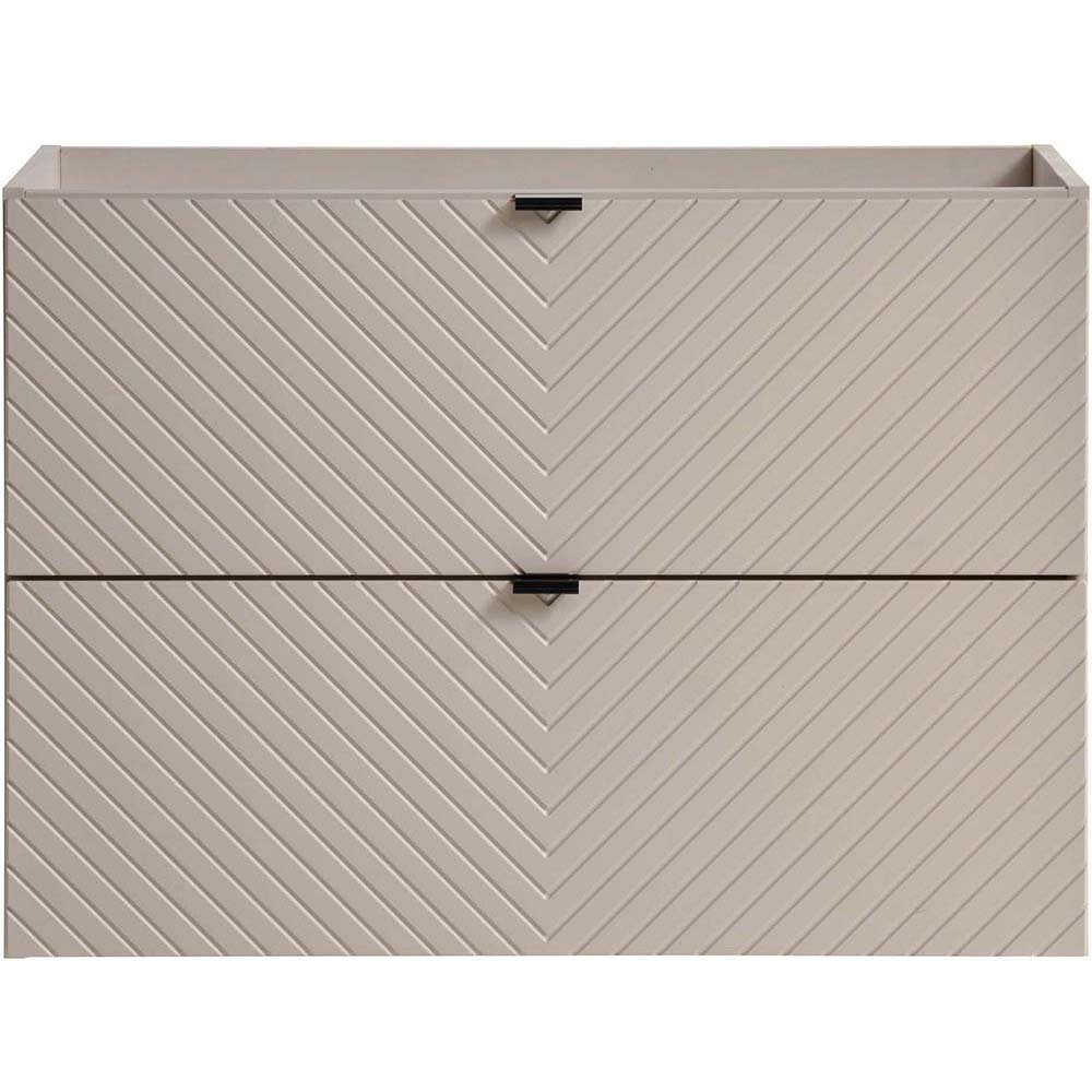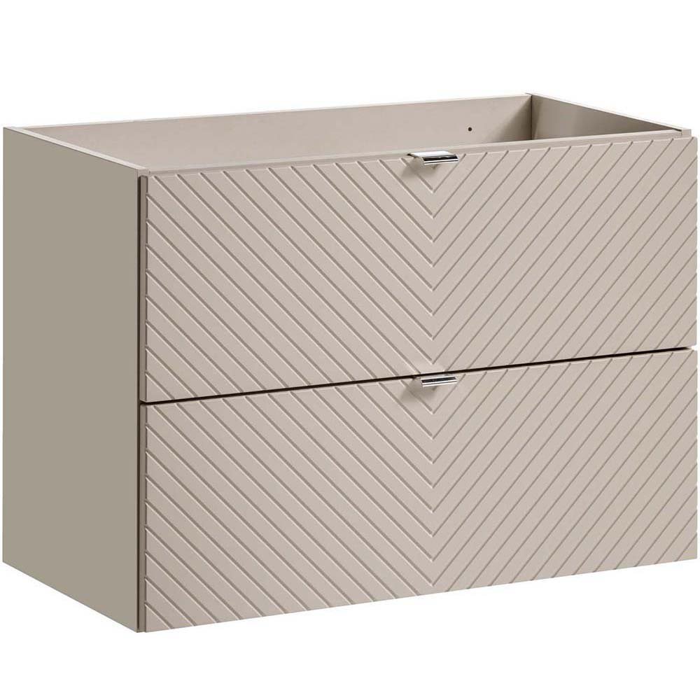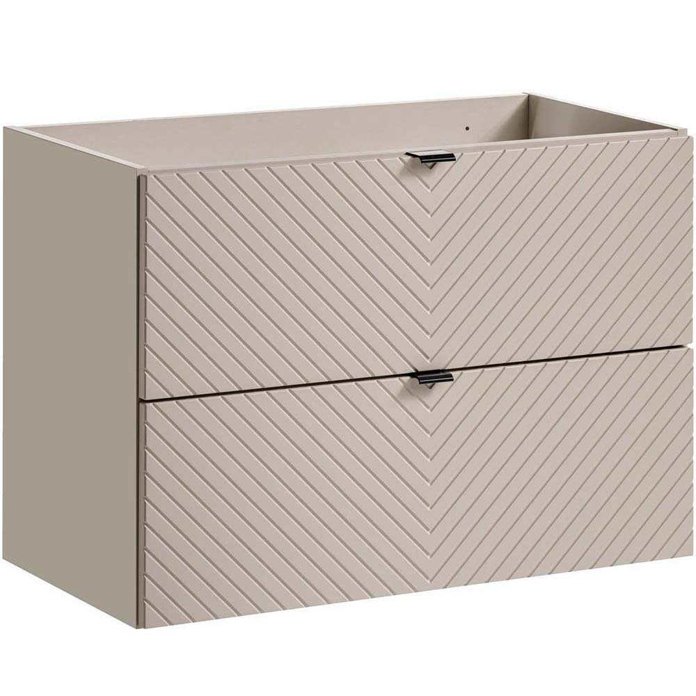 Szafka pod umywalkę 80 cm z dwiema szufladami z kolekcji Viva Cashmere to propozycja dla tych, którzy cenią sobie wyjątkowy design oraz subtelność detali. Głębia kaszmiru i trójwymiarowe, frezowane fronty w kształcie jodełki tworzą intrygujący akcent we wnętrzu, nadając przestrzeni charakteru i elegancji. Mebel wyposażony jest w uchwyty w trzech kolorach - złoty połysk, chrom połysk oraz czarny mat – dając możliwość indywidualizacji wyglądu i dostosowania do dowolnej aranżacji wnętrza.