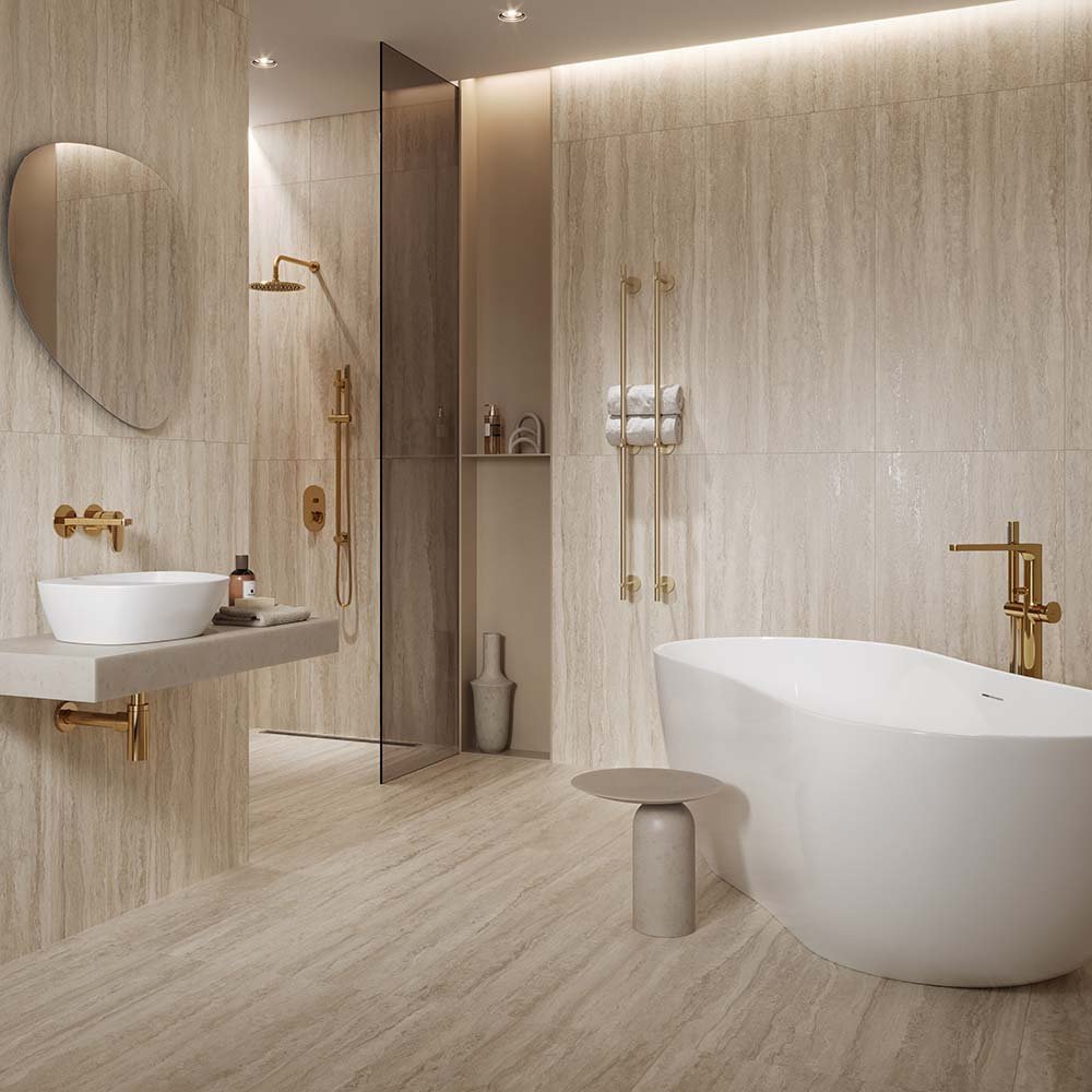 Gres szkliwiony TRAVERTIN SOUL beige mat 59,8x59,8. Gatunek drugi. Do stosowania na podłogach i ścianach, wewnątrz i na zewnątrz budynków, z wyłączeniem miejsc o bardzo dużym natężeniu ruchu.