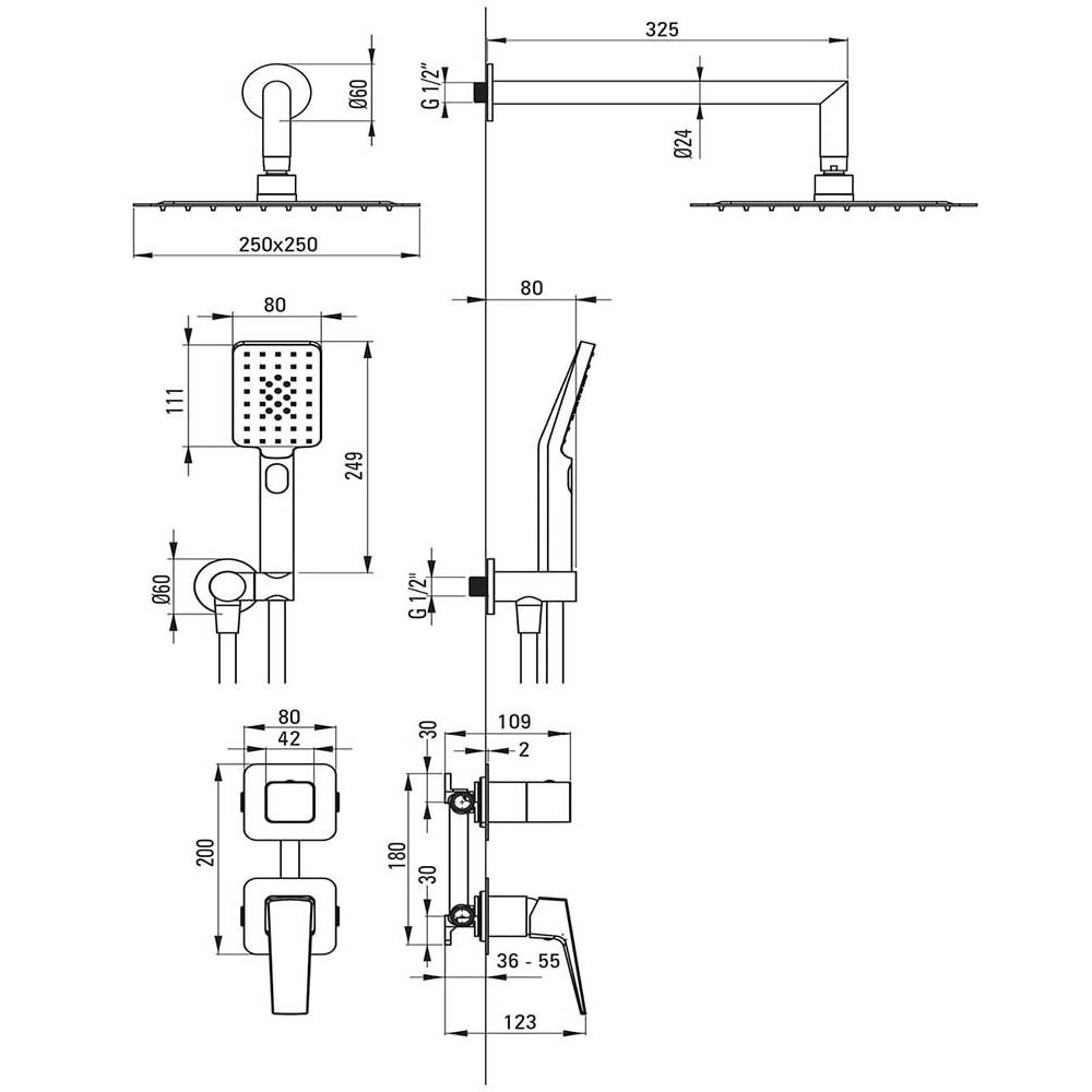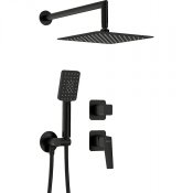 Zestaw podtynkowy w czarnym matowym wykończeniu to kwintesencja nowoczesnego designu. Składa się z kwadratowej głowicy natryskowej, słuchawki prysznicowej z przyłączem kątowym i wężem, a także baterii podtynkowej. Wykonany z wysokiej jakości materiałów, zestaw cechuje się trwałością i odpornością na korozję. Matowe wykończenie nie tylko dodaje elegancji, ale także jest łatwe w utrzymaniu czystości. Ergonomiczna dźwignia baterii pozwala na precyzyjne ustawienie temperatury i strumienia wody. Minimalistyczna konstrukcja ukrywa elementy montażowe, nadając łazience nowoczesny i schludny charakter.