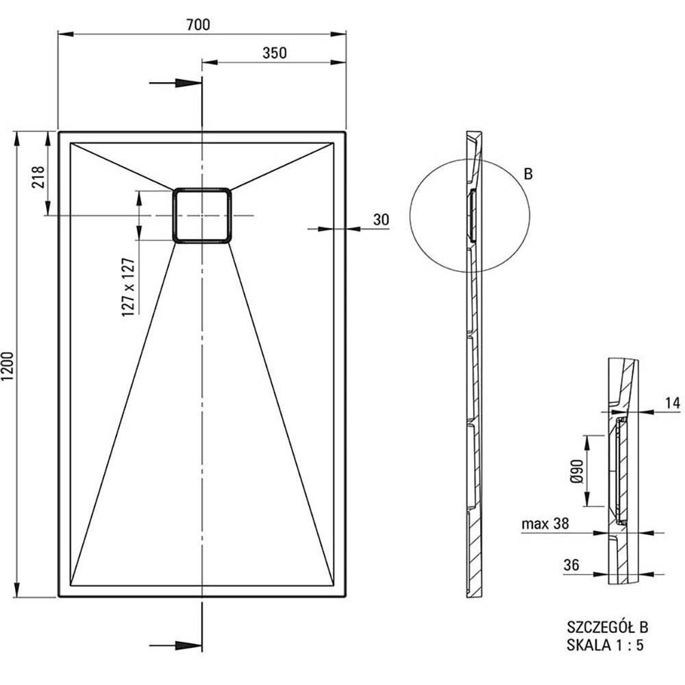 Brodzik prostokątny CORREO granitowy 120x70 antracyt