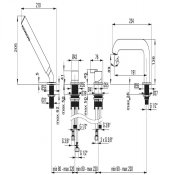 Bateria nawannowa SILIA 4-otworowa z zestawem prysznicowym brąz szczotkowany