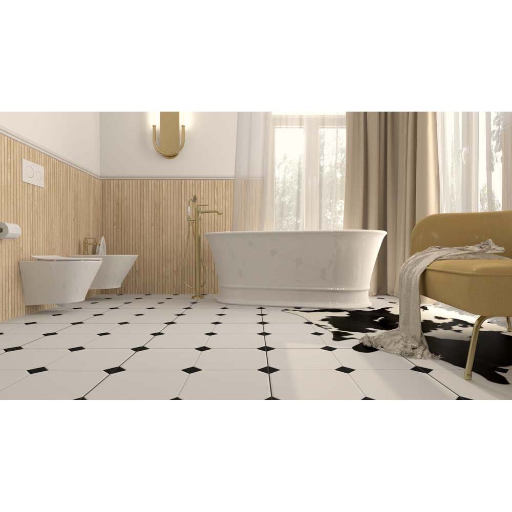 Gres szkliwiony hiszpański BETERA czarny; biały mat 33,3x33,3. Gatunek pierwszy. Do stosowania na podłogach i ścianach, wewnątrz i na zewnątrz budynków, z wyłączeniem miejsc o bardzo dużym natężeniu ruchu.