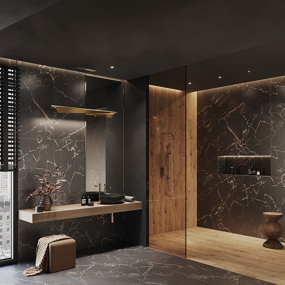 Gres szkliwiony MARIE SHOW black mat 59,8x119,8. Gatunek drugi. Do stosowania na podłogach i ścianach, wewnątrz i na zewnątrz budynków, z wyłączeniem miejsc o bardzo dużym natężeniu ruchu.