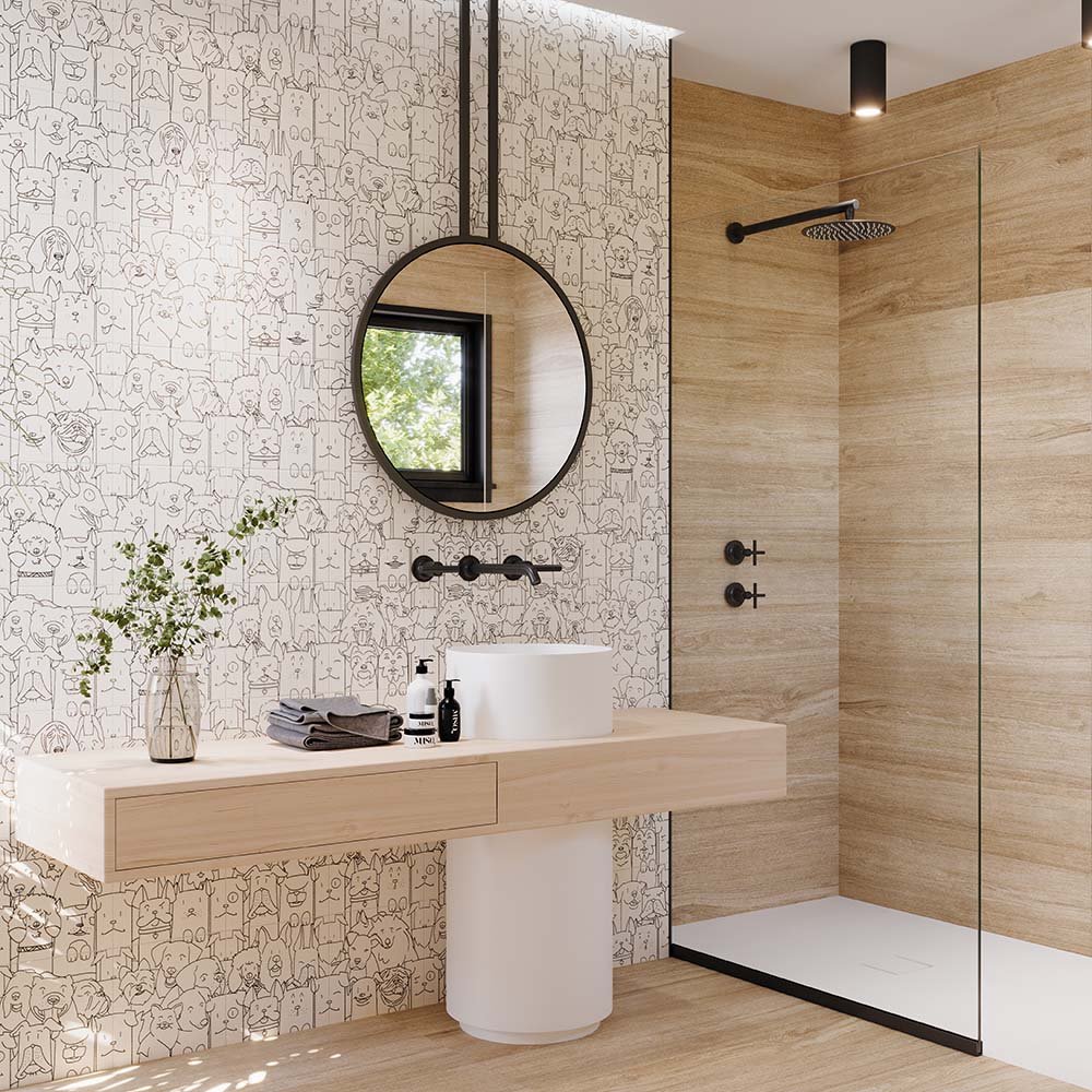 Gres szkliwiony hiszpański OH MY DOG biały; czarny mat 25x25. Gatunek pierwszy. Do stosowania na podłogach i ścianach, wewnątrz i na zewnątrz budynków, z wyłączeniem miejsc o bardzo dużym natężeniu ruchu.