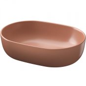 Umywalka nablatowa MODUO 50 owalna czerwona matowa. Umywalki z kolekcji MODUO wyróżnia to, że zostały wykonane z ceramiki o cienkich, 8 mm ściankach. Umywalki MODUO to różnorodność form i rozmiarów - okrągłe, prostokątne, owalne oraz o nieregularnym kształcie. Można je umieścić na blacie w różnorodnych konfiguracjach i obracać o 360 stopni. Zyskaj pełną swobodę w urządzaniu i użytkowaniu swojej łazienki.