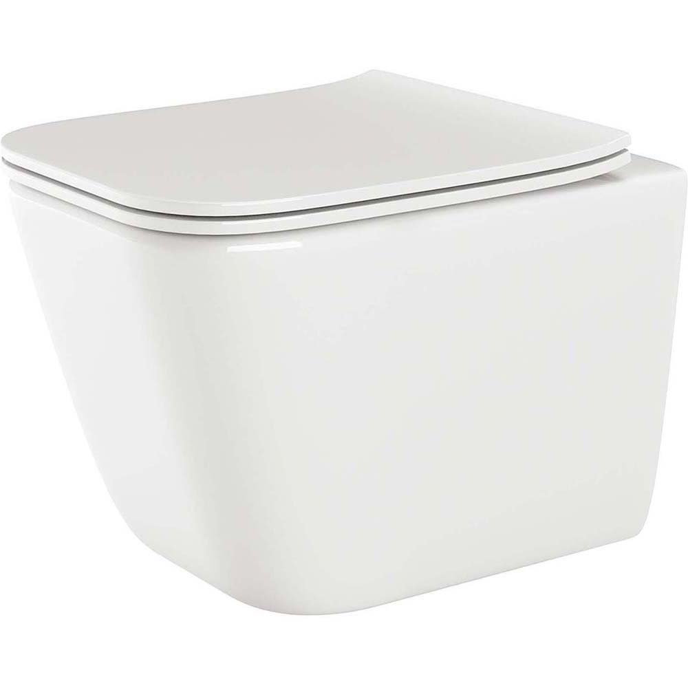Miska WC podwieszana PAROS bezkołnierzowa z deską wolnoopadającą biała