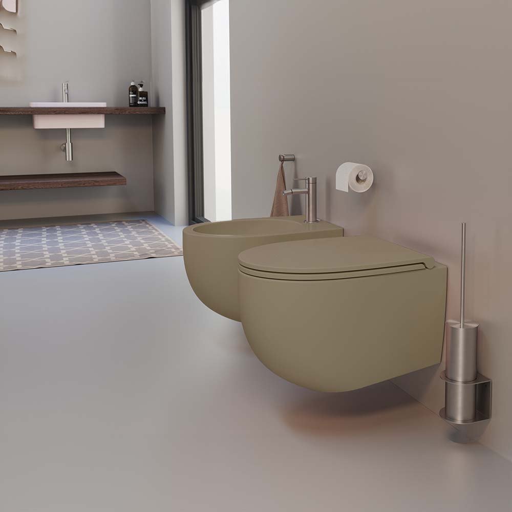 Owalny kształt powszechnie doceniany ze względu na swoją harmonię i niezbędność, przypominający organiczną doskonałość natury, miękkie i zaokrąglone linie przywołują pozytywny przekaz ochrony i lekkości, łatwo dostosowuje się do każdego środowiska mieszkalnego. Miska jest zaprojektowana bez otworów bocznych i montowana za pomocą ukrytych śrub, aby zapewnić estetyczny wygląd, wyposażona w cichą technologię Vertigo, aby zapewnić standardy higieniczne, ułatwić czyszczenie i zmniejszyć hałas spustu.