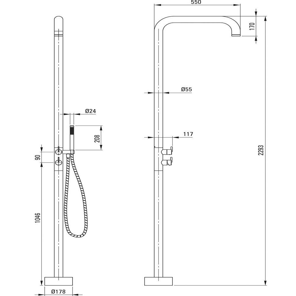 Kolumna prysznicowa SILIA podłogowa do ogrodu lub łazienki stal szczotkowana
